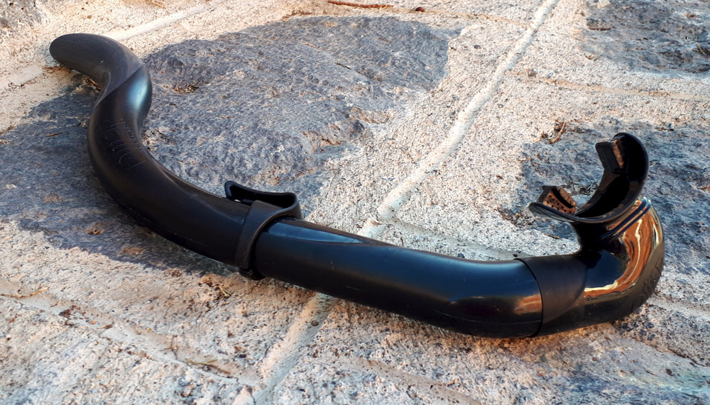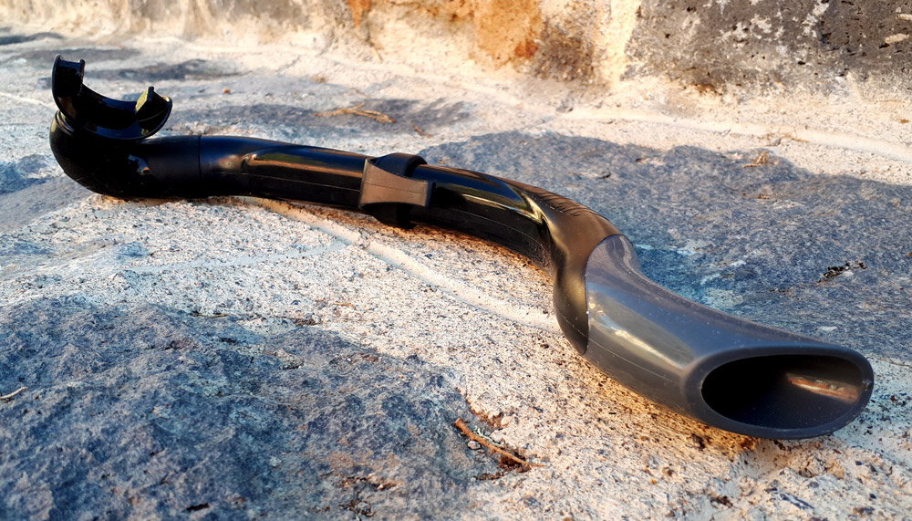 Perfectly fits the head and increases hydrodynamics. The protruding parts have been reduced to facilitate movement in caves, without the risk of tying the tube to rocks. The geometry of the slalom is designed to reduce water ingress to the surface even in rough sea conditions.